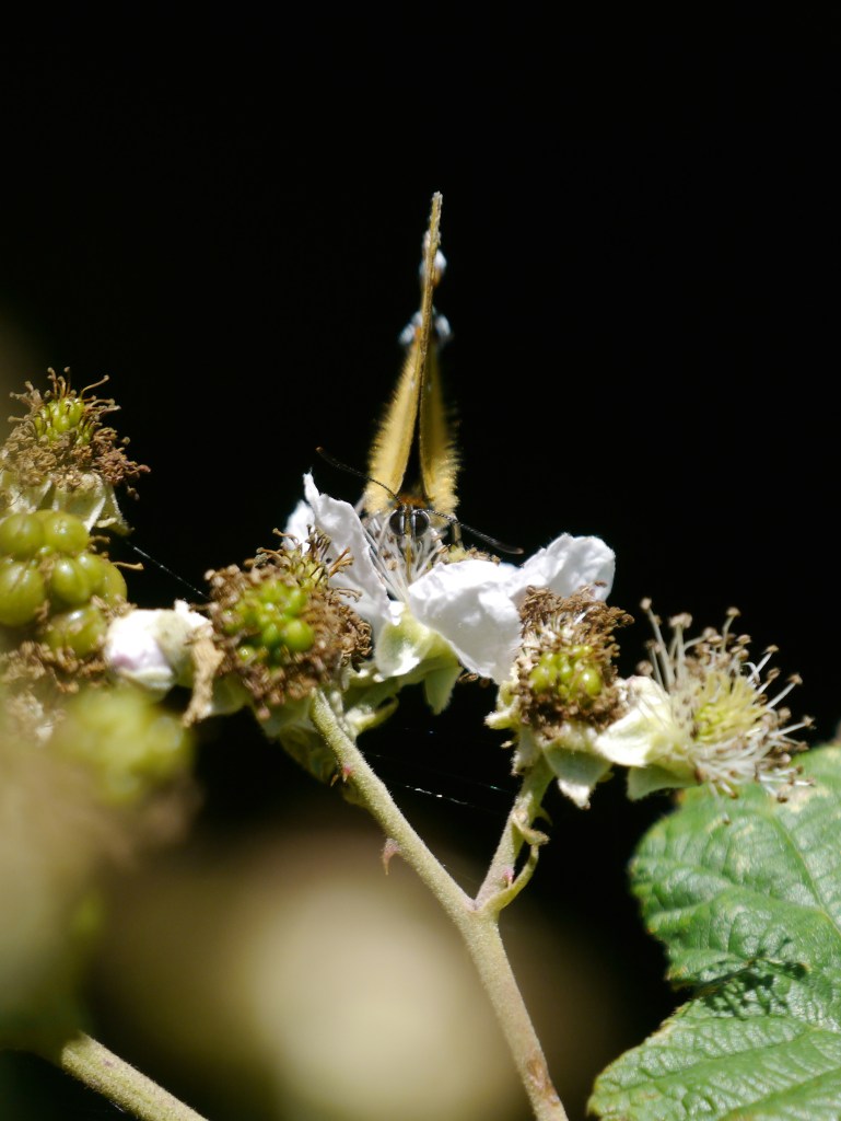 The chap kindly walked back with me to where he had been watching it, sure enough it was still feeding on the bramble flowers, good to have a close look at this smart butterfly in great light. I took a few pictures but spent more time having a good look through my ‘bins’.