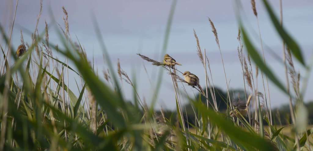 Pick of the birds locally has been the family party of Bearded Tits, I repeatedly missed them of late with my last encounter in November last year, although there has been sightings over the winter and especially recently. On the 9 July, the family group arrived at Middle Point from a little further North along the foreshore, I was then lucky to see them trying to fly out high over the Severn only to return twice, eventually they flew across the Dumbles. A pair with five juveniles.