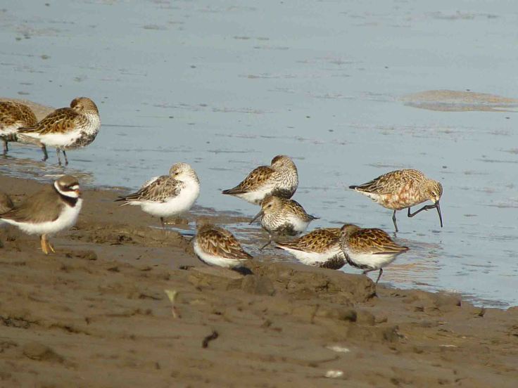 12 May 2010 I had a look on the estuary this morning where a Common Sandpiper, Curlew Sandpiper (in breeding plumage), 8 Sanderling, 3 Turnstone, 1 Bar-tailed Godwit and three Grey Plover were all on the mud off Middle Point.