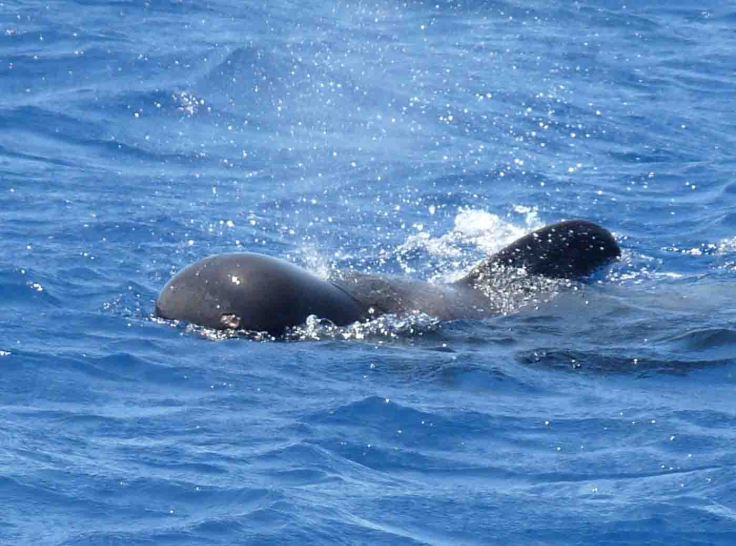 Pilot Whale; a pod of c 30 were seen at close range basking on the surface during our crossing on 29th June.