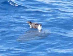 Little Shearwater; after thinking we could not improve on a Maderian Petrel at sea I noticed a bird behaving in a untypical fashion in my experience, it was disappearing underwater, plunging, in a flying action before reappearing again, when on the surface I could see it was a Little Shearwater and not a Flying Fish. I shouted to Luis to slow the boat down and bring her around which he did and we all got spectacular views as it peck fed around flotsam and jetsam, plunge dived and mad short flights between feeding bouts. Again it was another quality birding experience. Luis Dias managed to get some decent shots and I got a few which were useful for reference.