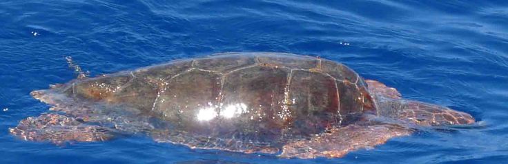 Loggerhead Turtle; four recorded on the 1 July pelagic, one was spotted by Rita very close to the boat but dived, Keith spotted another which again dived but two together which were picked up by Richard stayed on the surface for us to watch at leisure, yet another brilliant wildlife experience.