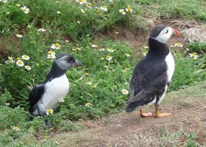 Puffin parent and ‘Pufflet’ getting ready for the ‘0ff’ and daring to practise flight