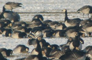 The icebergs and floes had 3000 Pintail, 1000 Shelduck and more duck species roosting upon them, open water Eiders, Goosanders and Smew and around 40 Goldeneye were also seen. Back in the car and a short drive to the Brent Geese. Amazingly close views of them were achieved as they grazed the grassy banks. A couple of Light-bellied Brents were feeding among the commoner Dark-bellied.
