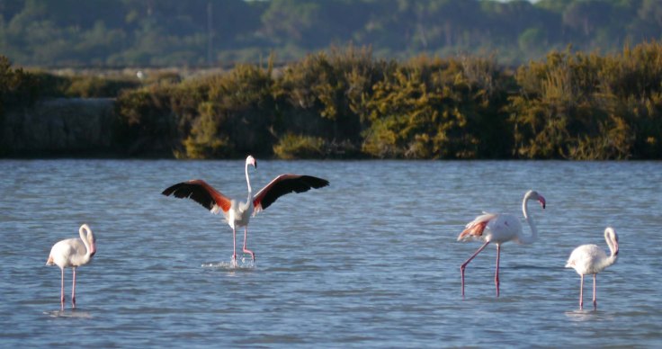 Greater Flamingo-large flocks on Bonanza and La Algaida salinas. Also from the car near Cadiz.