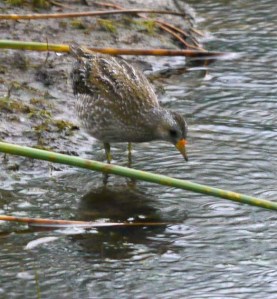 Seawatching is one type of birding that can be favoured by the birding community indeed loved, in some cases it is rather hated, when the weather looks right and delivers it can be amazing. After keeping a close eye on a a weather system that was due in it was becoming clear that it had potential. A number of friends were getting rather revved up about the forecast for Saturday so I decided to offer a day trip to give it a go. We left at 0400 arriving at Marazion Marsh just as a rain shower began at 0715. A quick search of the area and we were all soon watching a Spotted Crake below us as it fed around the edge of a small pool. Two were being seen here by the end of the day and this bird was nice detour.