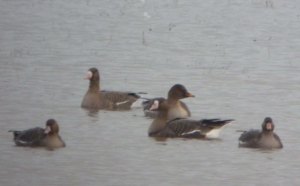 And a single Tundra Bean Goose with E. White-fronted Geese 28th January 2013 and a female Goldeneye flies from the Top New Piece 30 January 2013