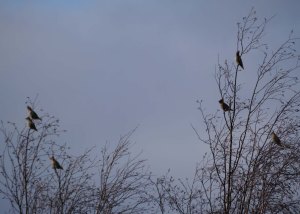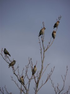 The diver was pleasing enough but I went home to get on with something on the laptop, duing a screen break I looked out the window to see 6 Waxwings in a neighbours birch tree. I crossed my fingers that they had seen my apples….they had! Soon after they flew to my beech tree, then to the wires over the garden, then down onto the apples….result….at last. I have been putting out apples all winter for them and the thrushes and Blackcaps but these are my first Waxwing this winter. It was interesting to see the squabbling amongst them even though there was plenty to go around. They spent just over an hour with me and I even got the County Recorder around to have a look as he is a co-Whitminster resident and had not seen them in the village before. Look out for his pic on the Gloster Birder website.