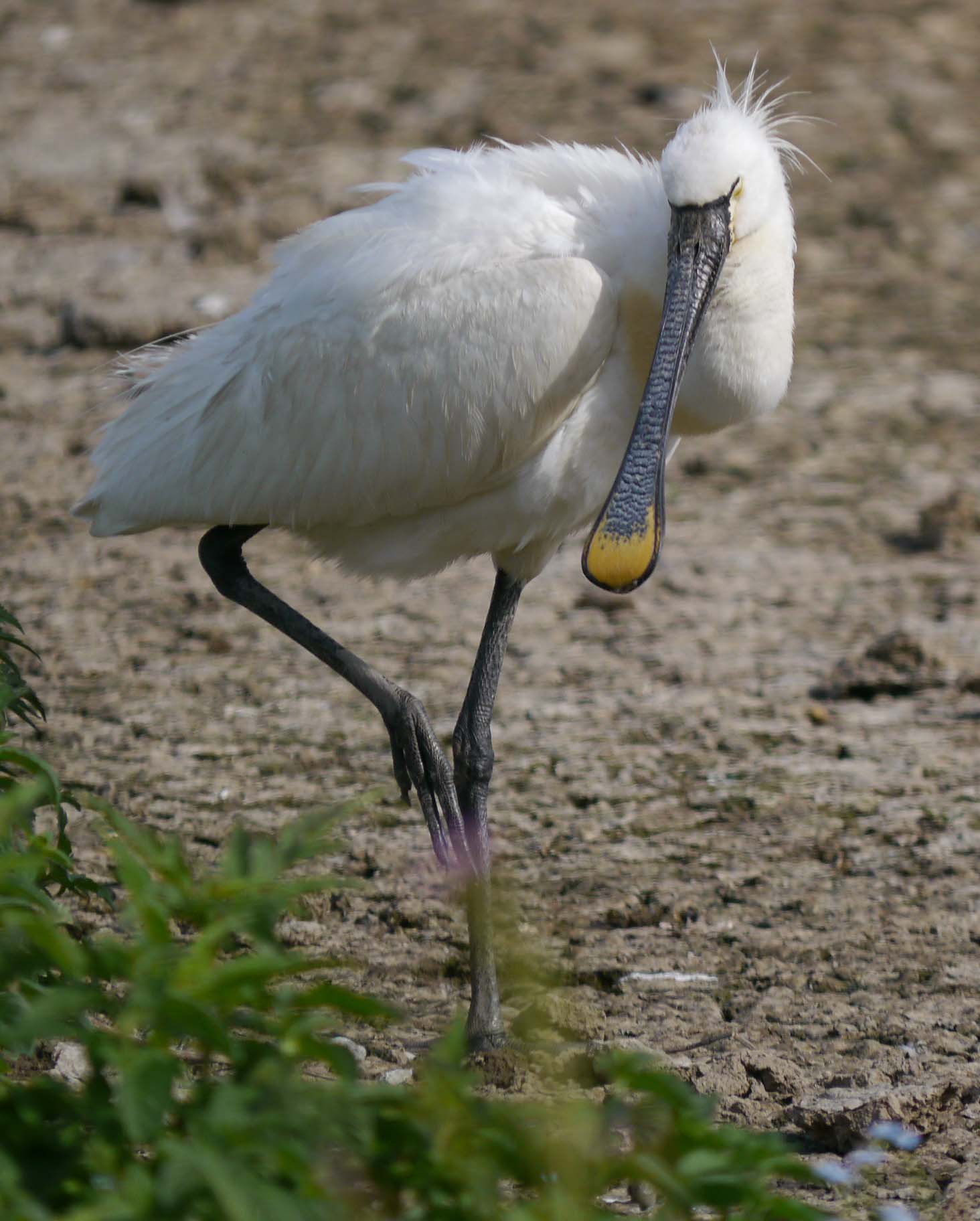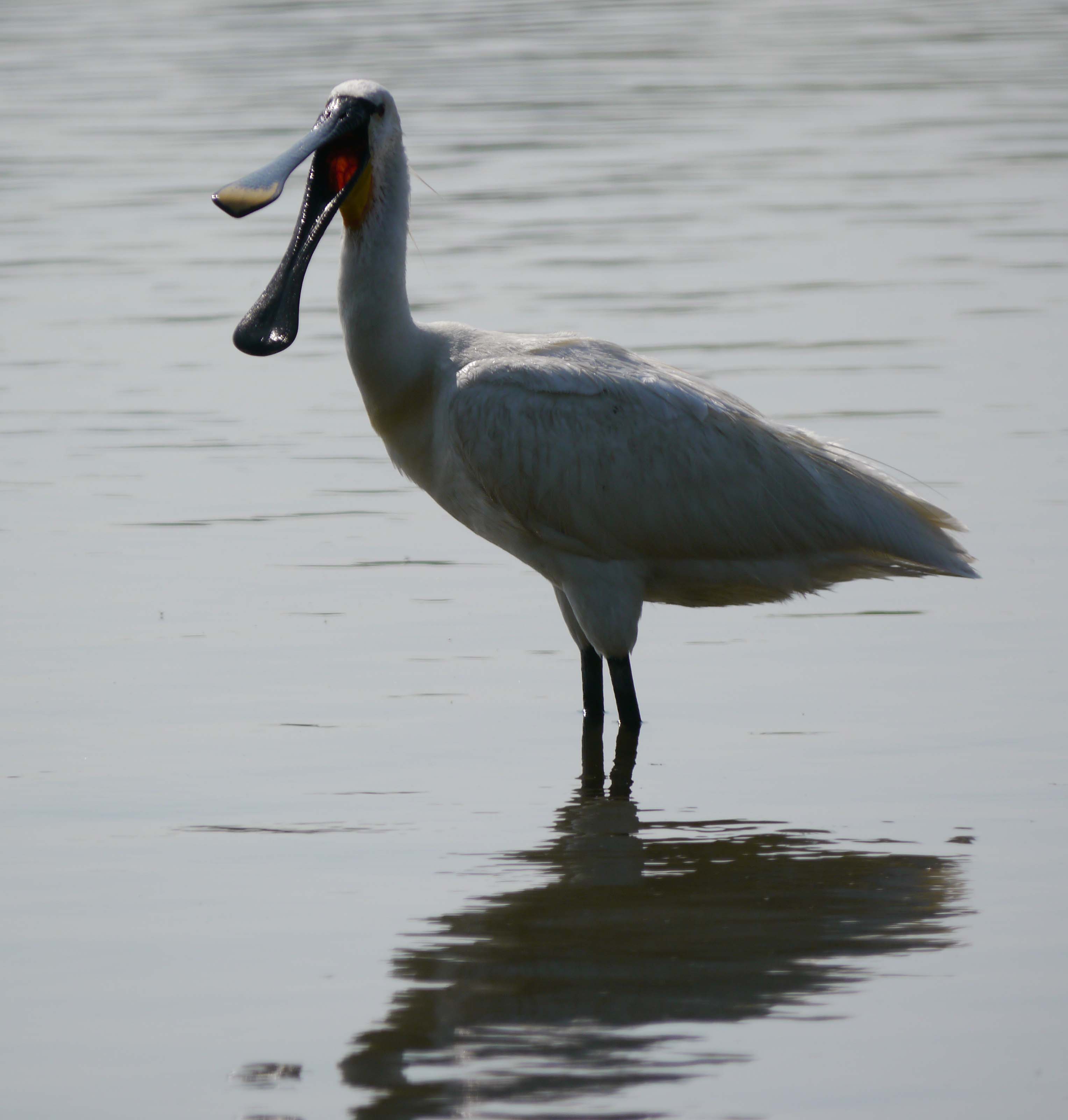 SPOONBILL on South Lake, taking a rest in the heatwave.