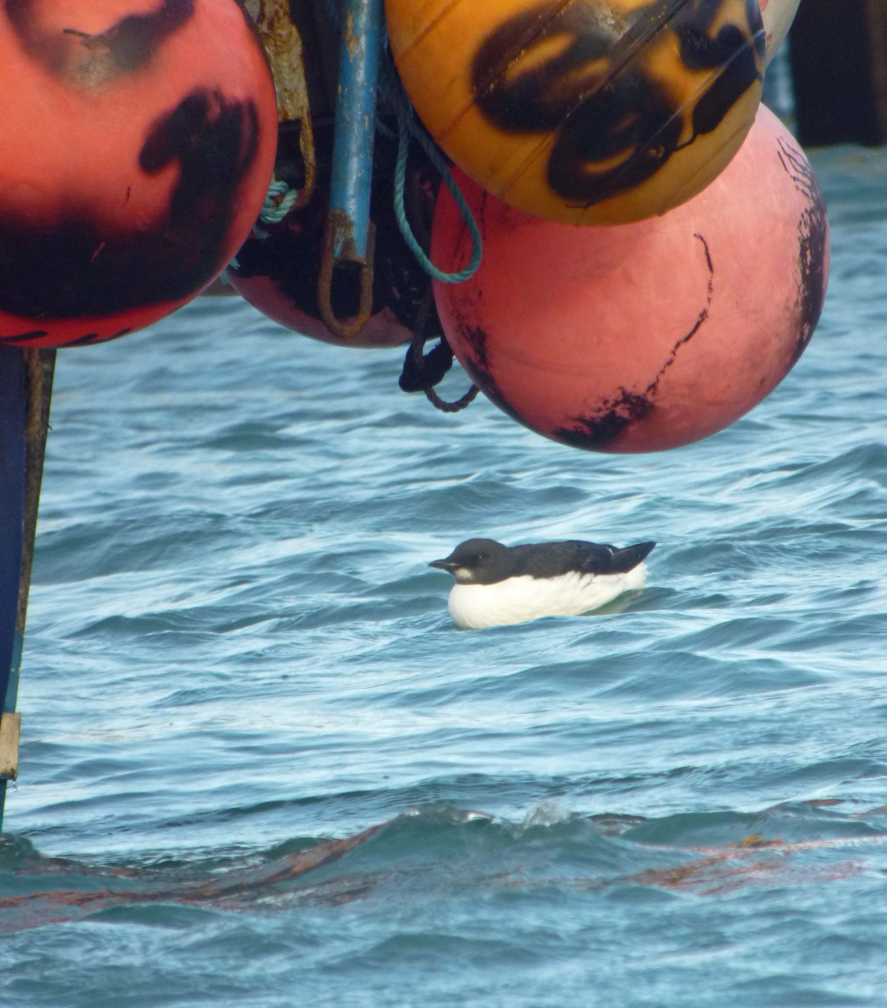 27 December 2013 A late start due to partying, extreme storm and the dog keeping me up the night before at my Sister in laws house in Dorset. A late morning decision was made to go to Portland Harbour for the Brunnich’s Guillemot and to see what the stormy wave action was like in Chesil Cove. The harbour and Fleet was very busy with thousands of birds, many seeking shelter out of the wind others feeding on what the waves were stirring up. Soon after arrival we were watching the Brunnich’s Guillemot alongside a Common Guillemot for comparison. Having seen the former species in it’s more homely Arctic waters in Iceland, Norway and Russia it was an irrestible to ignore this one so far south. A few Shag were feeding in the same area. Looking out from another sheltered spot a Razorbill, a non-breeding plumaged Black Guillemot, Slavonian Grebe, 2 Black-throated Diver, 40 Red-breasted Merganser and Little Grebe were all on view.