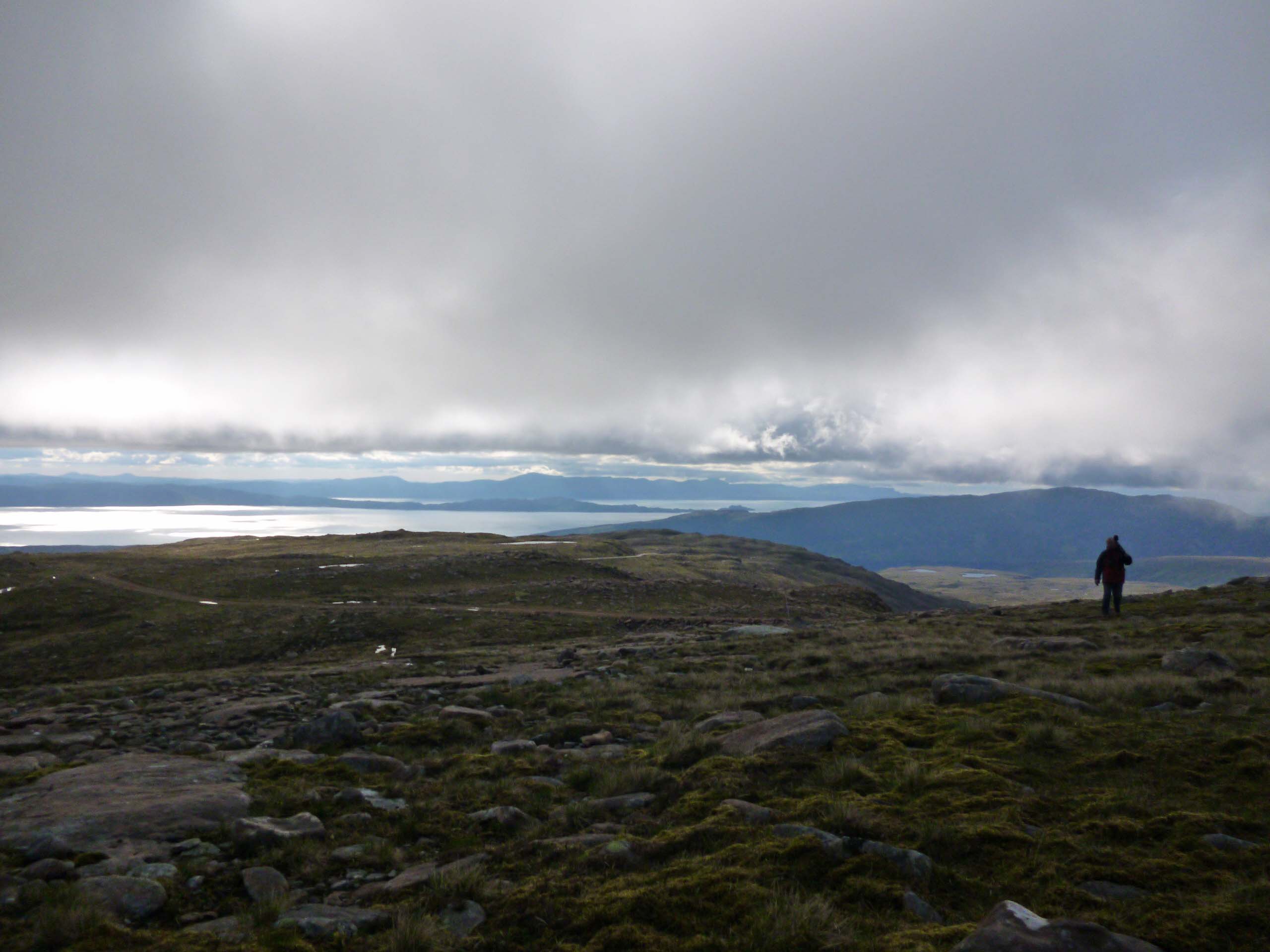 Enough of rain, it was time to take on board soup in a roadside eating house, head to Inverness and then West along the North shore of Loch Ness. The sun came out and the scenic drive was spot on. A few stops for bird sightings, fuel for us and the car and scenic views our next birding destination wasto be the high pass to Applecross. Before we climbed up the mountain, fortunately in the car, we saw a couple of Pink-footed Geese with the Greylags by the bridge. A roost of Oystercatcher and Curlew were on this small estuary. At the top the views were pretty good, the mist would close in on our target area but clear away again. We walked up the slope toward the radio masts and sat down against the rocks to scan a likely area. Immediately a Ptarmigan appeared in my scope as it scratched about on the steep, rock strewn slope.