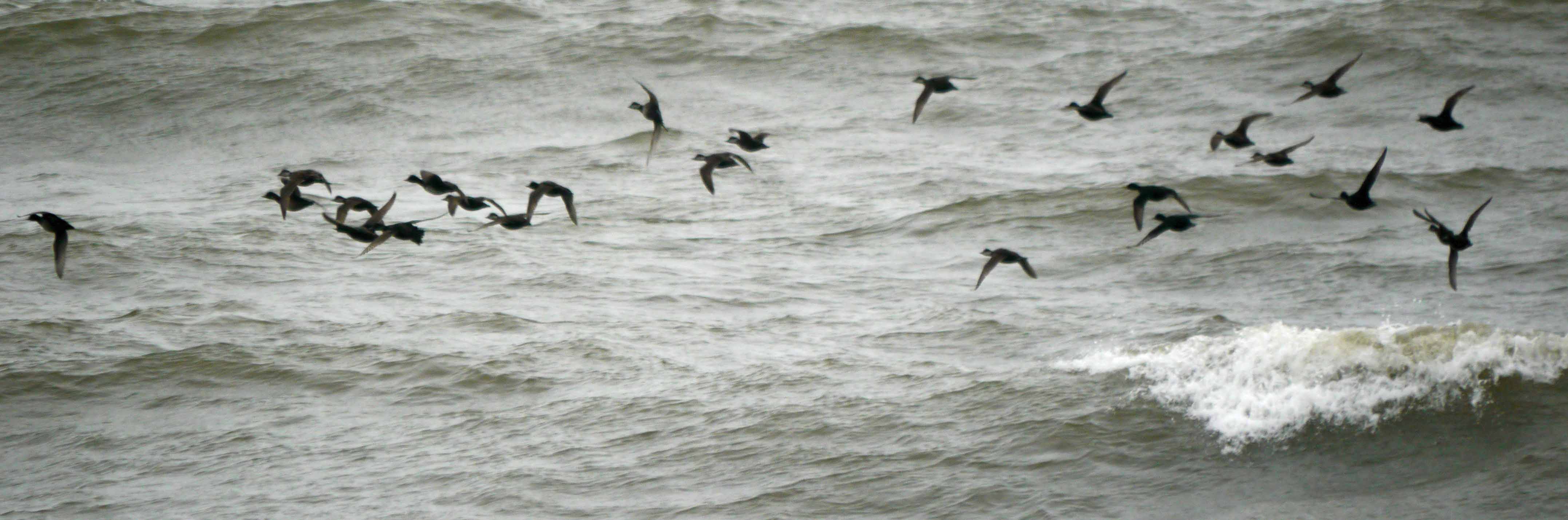 Back down the coast we walked from Blackdog to Murcar watching seabirds flying by and settled to get into a Common Scoter flock, they were all so busy doing everything a Scoter could do in a heavy swell and above a feeding area against a tide, there should be a specific name for a scoter flock, a scooter maybe? Sifting through the throng and ever changing, shape shifting flock we managed to pick out two big-headed male Surf Scoters and 6 very fine Velvet Scoter. A few Red-throated Diver were on the sea or moving through too.