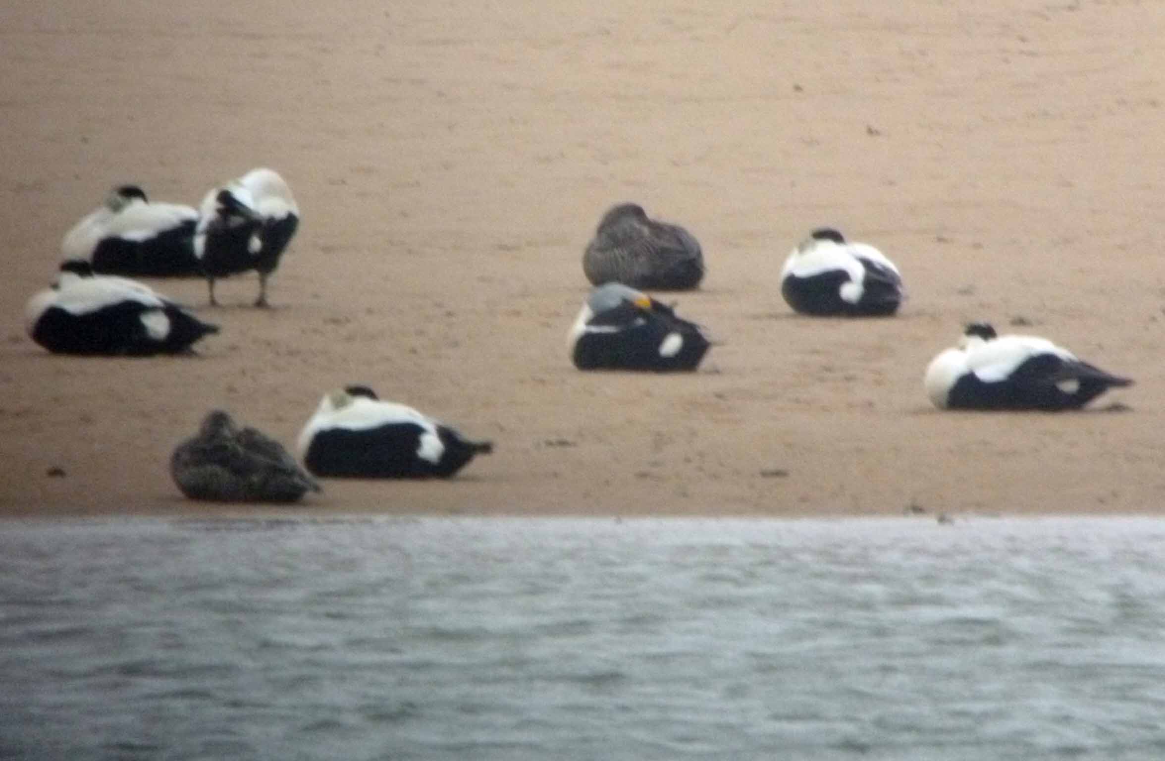 Leucistic or just a pale phase female Common Eider with a more normal specimen