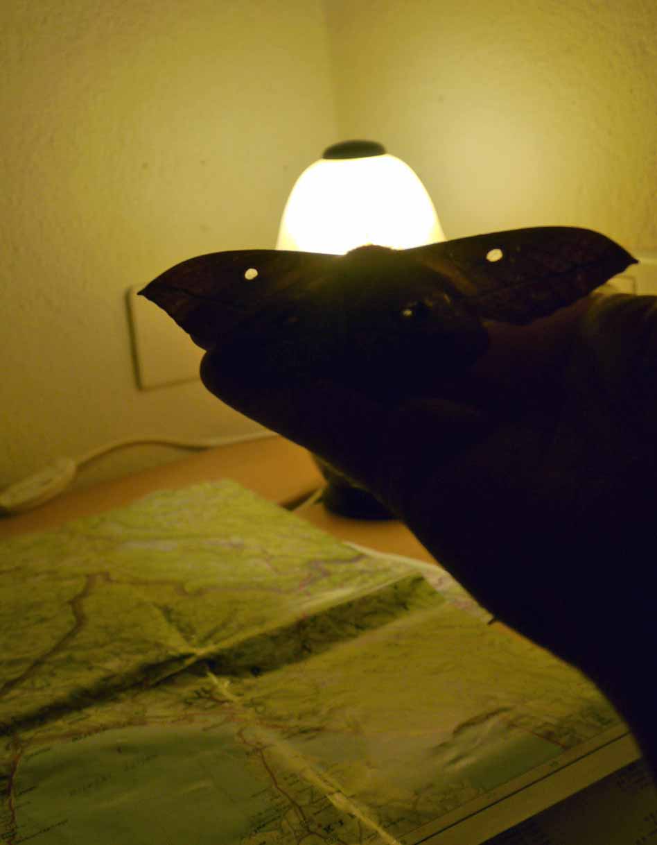 This amazing moth came into our apartment at Tourist Farm Kranj at Kosec, my daughter intially called out that a bat had entered the room! The spots on the wings were clear which led me to think it could be used to attract or ward off predators with moonlight filtering through.