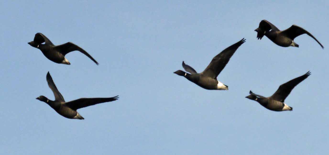 On scoping through the flock one really stood out, a big, robust and very black plumaged bird with a well marked throat slash was studied, in the strong sunshine a neck sock was just discernable from the mantle so it may have been an intergrade with Dark-bellied Brent or a genuine Black Brant.